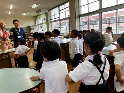 理科室では人体模型やロケットを、保健室では大きな歯の模型を、校長室ではたくさんの歴代の校長先生の写真を見て、興味津々の様子でした。他にも、図書室、職員室、事務室、特別支援学級にも行きました。これから、もっと学校のことを知って、学校を好きになってほしいと思います。