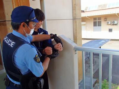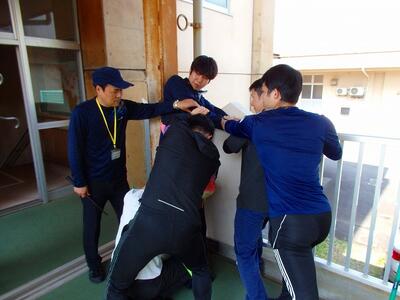 訓練には、門川交番の方々にご協力をいただき、不審者侵入時の初期対応の仕方、職員間での連絡方法、各教室での対応、不審者への対応(さすまたの使い方)など、危険を回避するための行動の仕方について、改めて職員も確認しました。