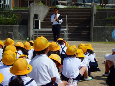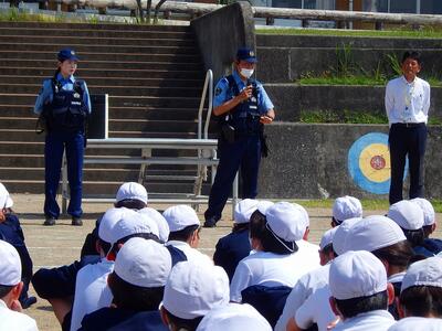 児童も運動場に避難した後に警察官からお話をしていただき、自分たちの命を守るためにどのように行動すれば良いのかしっかりと確認できたと思います。