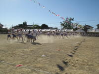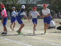 【走…1年生から6年生まで連続して、大声援や拍手の中、全員が全力でゴールを駆け抜けました!】