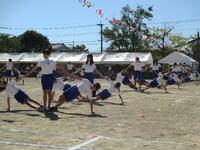 【表現ダンス・団技…表現ダンスと団技を交互にプログラムに組み入れました。表現ダンスでは、身体をのびのびとと元気よく動かしている姿に感動しました。団技では、団員と力を合わせて、よりスピーディーにアンカーにつなぐようにがんばりました!】