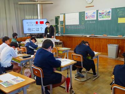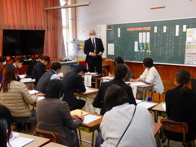4校時は、以下の学級を参観していただきました。また、保健室では養護教諭が、事務室では主任主事がそれぞれの業務に対する取組状況と課題について説明しました。