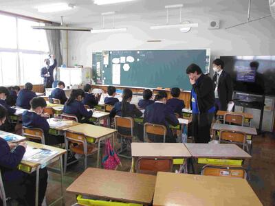 さて、そういったユニバーサルデザインがよくできているということで、1月19日(金)に宮崎県教育委員会から指導主事や特別支援教育関係の先生たちが、5年1組を訪問しました。そして、授業の様子を動画に収めました。いずれ、それを編集して、宮崎県内の先生方の研修に使用するそうです。