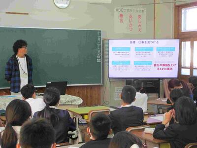 地域おこし協力隊の2名の皆様、お忙しい中、時間をつくって、これまでの人生経験で感じた思いや考えを6年生へ丁寧に話してくださり、本当にありがとうございました。きっと、児童は自他の命や人間関係、学ぶことの大切さを感じ取ることができたとともに、多様な職業観・勤労観を理解することができたと思います。