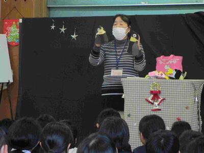11月27日(月)に、4・5・6年生を対象に「クリスマスお話会」が開催されました。28日(火)は、1・2・3年生を対象に開催されます。毎年、児童が楽しみにしている読み聞かせです。