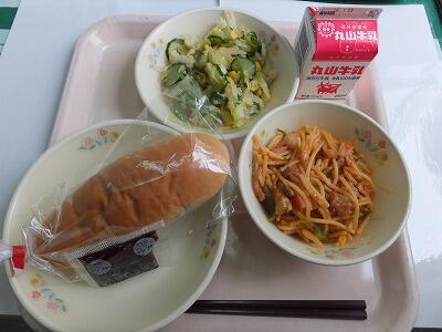 減量パン・チョコマーガリン・スパゲティナポリタン・スタミナサラダ・牛乳