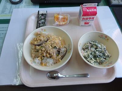 鶏飯は、鹿児島県奄美大島の郷土料理で、蒸した鶏肉やしいたけ、錦糸卵、漬物などの具材と、のり、ねぎ等の薬味をご飯の上にのせ、鶏がらスープをかけて食べます。給食では、給食当番がご飯に具材の入ったスープをかけて配りますので、自分でのりをちぎって食べましょう。洋風白和えは、豆腐にみそ、マヨネーズ、ごまを加えて衣を作り、きゅうり、ほうれん草、ロースハムを和えています。白和えを食べたことがない人にとって、豆腐に砂糖とみその味付けでは、おいしく感じないかも知れません。そこで、少しマヨネーズを加え、まろやかな味の洋風白和えにしました。