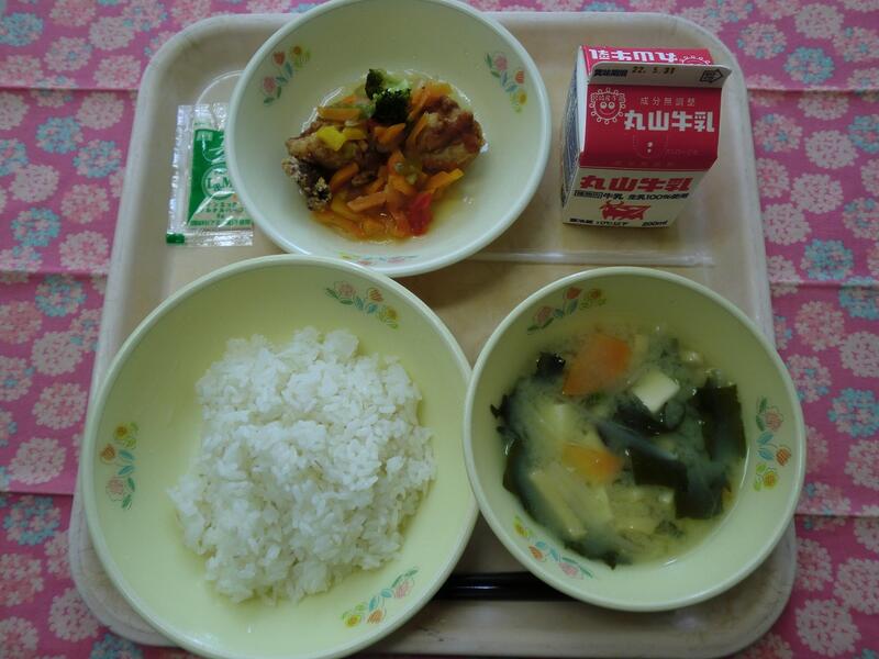 【一口メモ】宮崎県は鶏肉の生産がとても多く、「チキン南蛮」や「地鶏の炭火焼き」といった鶏肉を使ったおいしい料理がたくさんあります。南蛮漬けは、魚や肉を揚げて甘酢に漬けたものです。給食では鶏肉と野菜を別々に出しますので、配膳の時に鶏肉の上に野菜をかけて食べてください。揚げたての熱い鶏肉と冷たい野菜を一緒にすると、細菌が繁殖しやすい温度になるので、出す時には別々にしています。