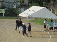 9月19日(火)の放課後に、先生たちで、運動会に向けてテントを立てたり、ポイント(目印)を打ったりしました。