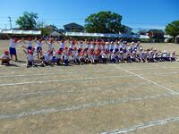 5・6年生のリーダーのかけ声に合わせて各団互いにエールを交換し、最後は全校児童で門川小学校にエールを送りました。