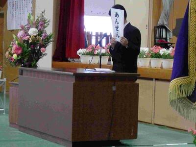 先生方一人一人が自己紹介をするたびに、大きな拍手が起こったので、ステージ上にいる緊張気味の先生たちは、児童のあたたかい心に触れて、とても嬉しかったそうです。また、6年生代表による歓迎のことばを聞いて、門川小学校が朝のボランティア活動やあいさつ運動、正しい廊下歩行を伝統的に行っていることが分かったそうです。