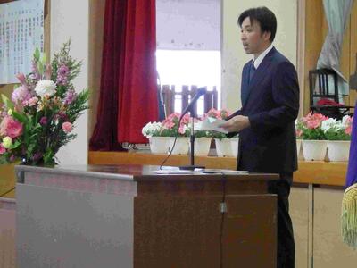 来賓の門川町教育委員様、門川小学校PTA会長様からもお祝いのことばをいただきました。新1年生の「はいっ」、「ありがとうございます。」、「よろしくお願いします。」という返事やお礼のことばが、誰に言われるわけでもなく、自然と自分たちから発せられて、すごく感心しました。また、とても微笑ましかったです。