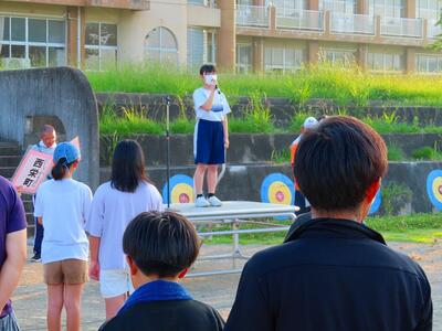 夏休みが始まって最初の平日である7月22日(月)に、門川町の夏の恒例「門川町一斉ラジオ体操」(主催:門川町PTA協議会、門川町子ども会育成連絡協議会)が、本校の運動場を含め、草川小学校、五十鈴小学校、旧西門川小中学校運動場を会場に行われました。