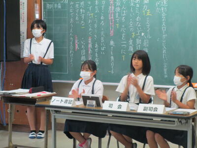 昨日8月31日(木)の6校時は、その運動会が盛り上がり、思い出に残るためにスローガンを決める代表委員会でした。参加者は、運営・集会委員会のメンバー、5・6年の各学級の代表、各委員会の代表でした。