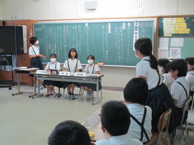 9月11日(月)の2校時は6年1組、3校時は6年2組で「ようこそ先輩」が行われました。これは、6年生の総合的な学習の時間の一環でした。一番自分たちに身近な1年上の先輩(中学1年生)に、中学校の様子を聞くことで、自分の将来について考えるきっかけにするというものでした。