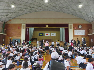 今回の訓練に際しまして、引き取り者の方々には、学校が示した時間を守ったり道路を通ったりしてくださり、ありがとうございました。おかげさまで、予想していた道路や体育館での渋滞や混雑が見られませんでした。ご協力、本当にありがとうございました。