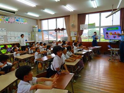 本日はお忙しい中、門川小学校に来校され、児童に分かりやすい講話をしてくださり、本当にありがとうございました。今回のお話を聞きながら、「水産業の仕事」に興味をもった児童、「海を守る」ためにどんなことができるか考えたくなった児童、「ちりめんや水産加工品」に興味をもった児童など様々で、今後の学習活動後がさらに楽しみになりました。