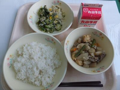 里芋のごまみそ和えは、里芋を使った和え物です。里芋は、煮物にすることが多いのですが、和えてもおいしく食べられます。見た目だけで判断せず、まずは、食べてみましょう。給食では、宮崎県でとれた物を出来るだけ使おうと考えています。今日の切り干し大根や里芋は、地域でたくさん作られています。それを使うことが、地域を元気にすることに繋がります。