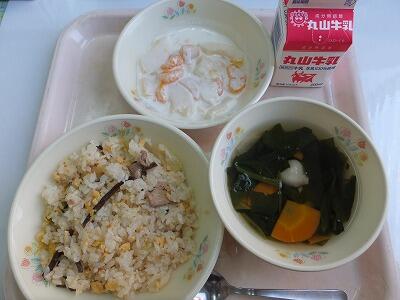鶏飯・洋風白和え・果物・牛乳
