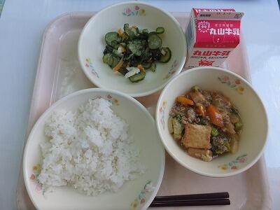 麦ご飯・麻婆豆腐カレー風味・くらげのマヨネーズ和え・牛乳