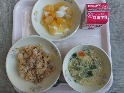 《今日の献立》ジャンバラヤ・コーンスープ・フルーツヨーグルト・牛乳