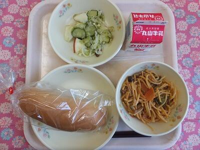 【献立】減量パン・スパゲティナポリタン・日向夏風味サラダ・牛乳