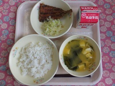 【献立】麦ご飯・蒲焼き・ボイルキャベツ・味噌汁・牛乳