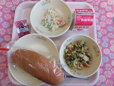【献立】コッペパン・だいずバター・卵とじ・ポテトサラダ・牛乳