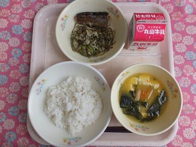 【献立】麦ごはん・さんまのゆず味噌煮・昆布あえ・味噌汁・牛乳