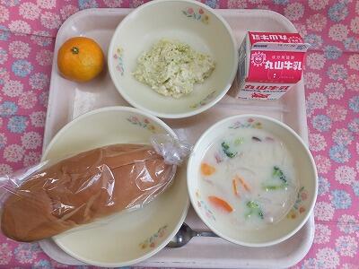 【献立】黒糖パン・かぼちゃのシチュー・海藻サラダ・牛乳