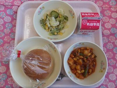 【献立】米粉パン・ポークビーンズ・スタミナサラダ・牛乳