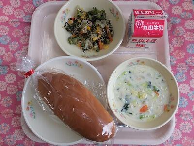 【献立】ミルクパン・かぶと白菜のクリーム煮・ひじきのサラダ・牛乳