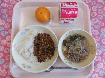 【献立】鉄人ドライカレー・レタスのスープ・果物・牛乳