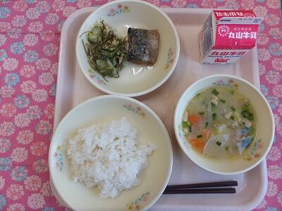 【献立】麦ご飯・さばのごま味噌煮・昆布和え・さつま汁・牛乳