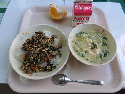 学校給食には目標があります。栄養バランスを知るだけではなく、仲間と協力して給食当番を行ったり、食べ物や生産者、調理員さんへ感謝したり、様々な国の食文化を知ったりできます。ただ、それを意識しないと、おいしいだけで終わってしまいます。一口メモや食育だよりを参考に、自分の食生活を振り返ってみましょう。今日のマリネにはレバーが入っています。生姜醤油で下味をつけ、片栗粉をまぶして揚げ、カレー味のマリネにしました。苦手な食品も食べなければいつまでも苦手で終わってしまいます。様々な食品を知ることも大切です。