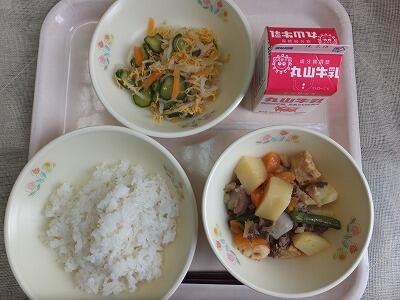 【今日の献立】米粉パン・スイートポテトシチュー・スタミナサラダ・牛乳