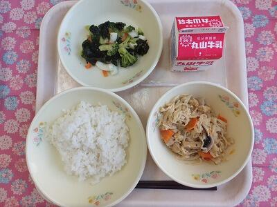 【献立】麦ご飯・高野豆腐の卵とじ・かみかみ和え・牛乳