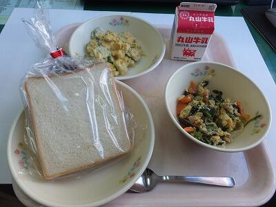 食パン・チョコマーガリン・卵とじ・かぼちゃのサラダ・牛乳