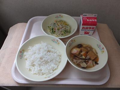 麦ご飯・厚揚げの中華煮・パンサンスー・牛乳
