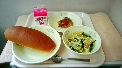 《今日の献立》ハンバーガー・野菜のカラフルスープ・牛乳