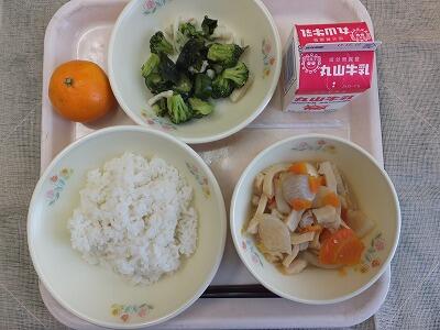 《今日の献立》米粉パン 魚の変わりあげ ボイルキャベツ 冬野菜のコトコト煮 牛乳