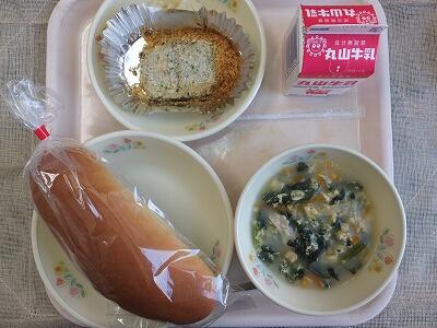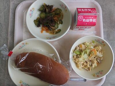 《今日の献立》ミルクパン いり豆腐 カレーマリネ 牛乳