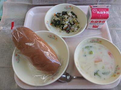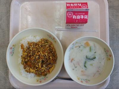 《今日の献立》ドライカレー クラムチャウダー 牛乳