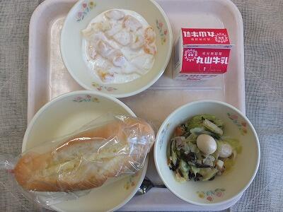 《今日の献立》マヨネーズパン 八宝菜 フルーツヨーグルト 牛乳