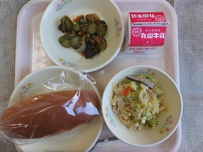 【今日の献立】ミルクパン・炒り豆腐・カレーマリネ・牛乳