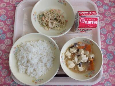【献立】麦ご飯・豆腐の中華煮・ゴマネーズサラダ・牛乳