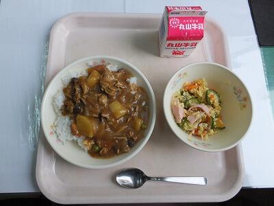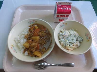 今日の給食は、学校給食で人気の献立・カレーライスです。本場インドのカレーと、現在私たちが食べているカレーはかなり違うようです。本場インドのカレーは、スープのようにさらさらしたものです。その昔、インドはイギリスの植民地でした。インドの食文化であるカレーをイギリスに持ち帰り、シチューのようにアレンジしたヨーロッパ風のカレーが、現在私たちが食べているようなとろみのあるカレーです。嫌いな野菜もカレーに入れれば食べられるという不思議な味・カレー、おいしくいただきましょう。