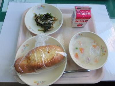 マヨネーズパン・かぶのシチュー・海藻サラダ・牛乳
