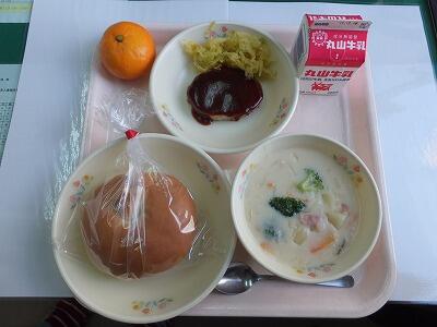 米粉パン・かぶと白菜のクリーム煮・まめまめサラダ・牛乳