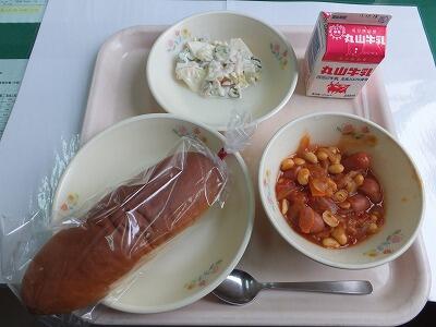 ミルクパン・チリコンカン・白菜とりんごのサラダ・牛乳
